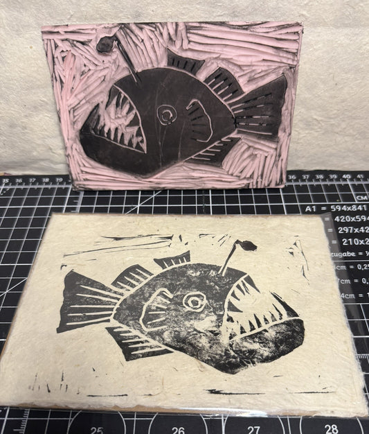 Every print starts with a block, a blade, and a good idea—carved slowly, inked messily (on purpose), and pressed one by one onto textured lokta paper.