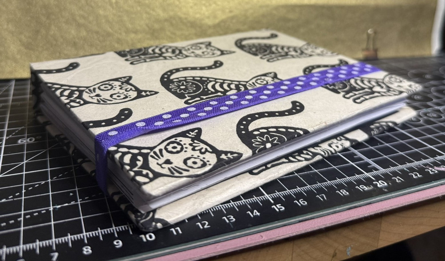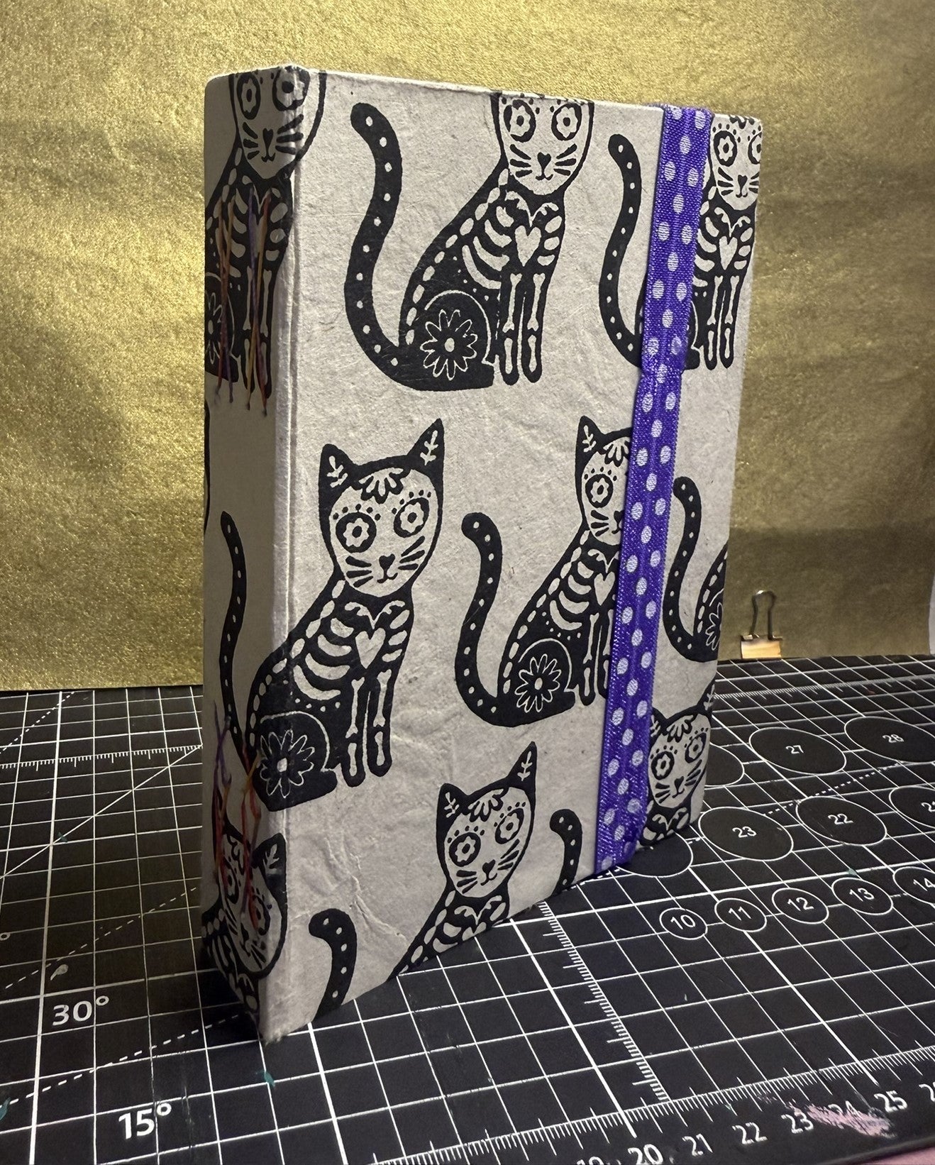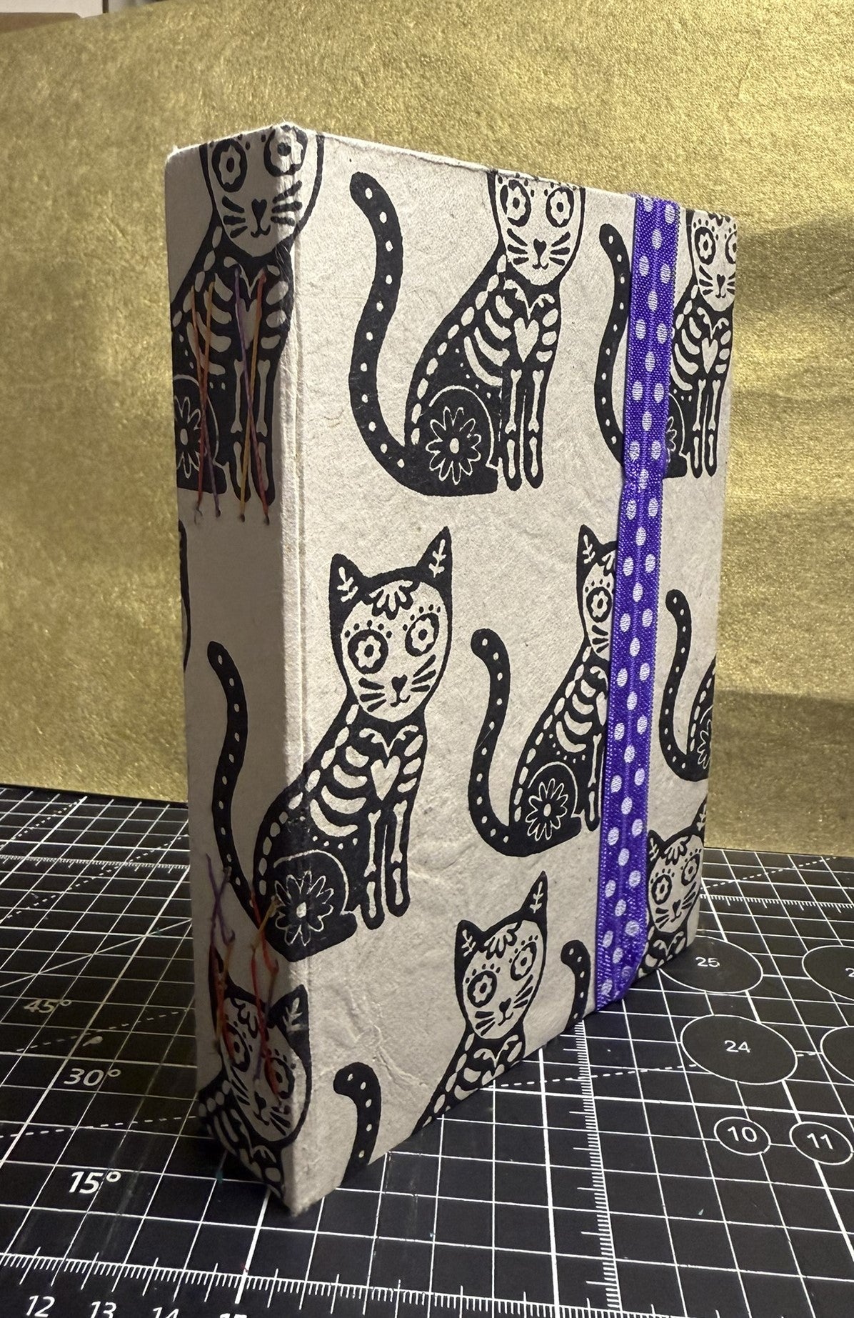 Witchy, wild, and wonderfully tactile. This 5x7 journal features charming black cat lokta paper and a rich black kraft paper interior. The 96 lined pages are thick, custom-printed by hand and trimmed for precision.