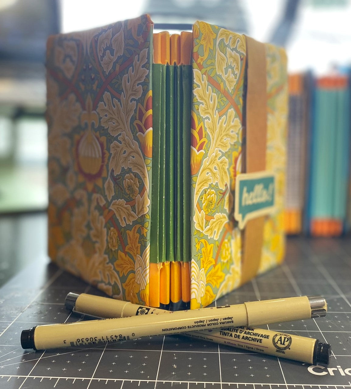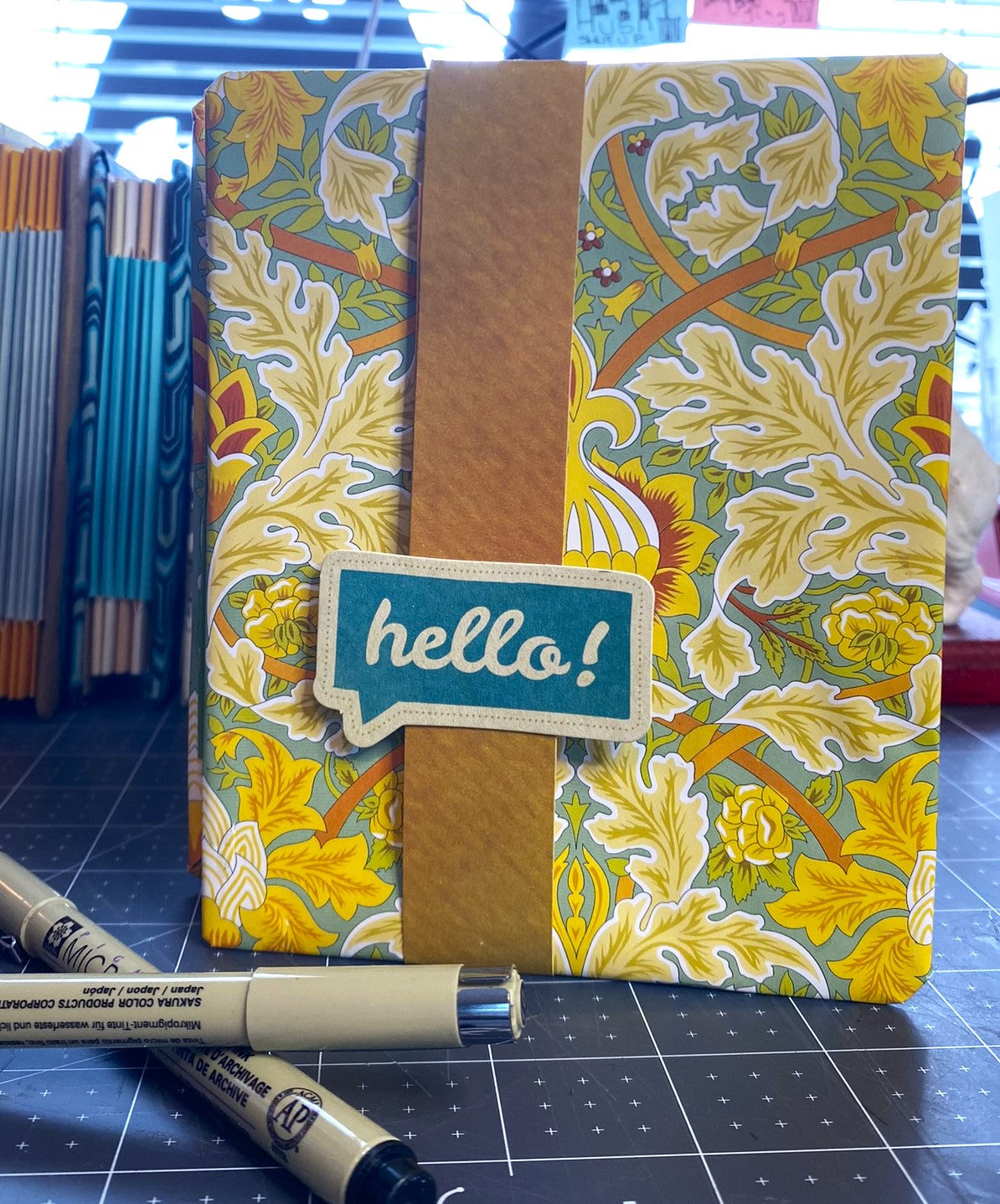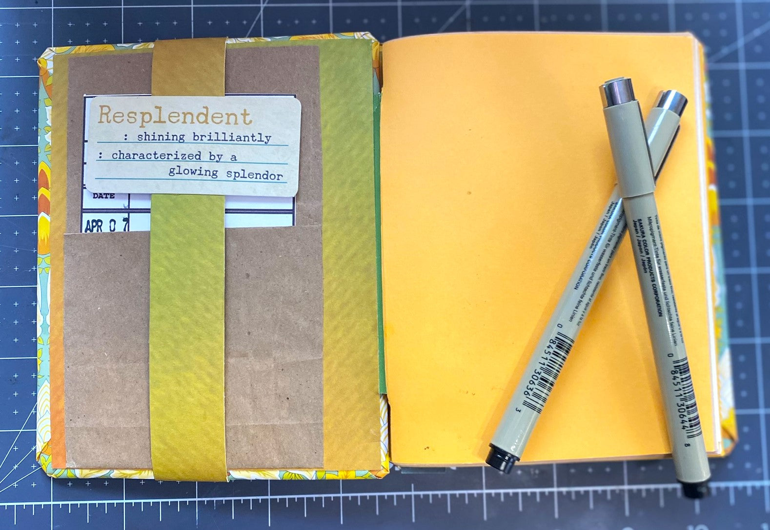Journal also comes with a paper pocket band that can be used or removed. It can catch little bits of paper, or indicate where you are in your journal. It can also be flattened and used as a bookmark.