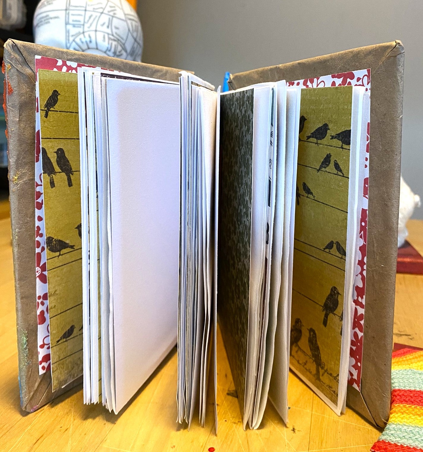 This is a great journal for someone wanting to try junk journaling, but would prefer to have a premade cover and signature set. Everything is paper, there are no threads. The spine has no glue. It would be a great blank book to start with. This is a unique journal, there are no others like it.
