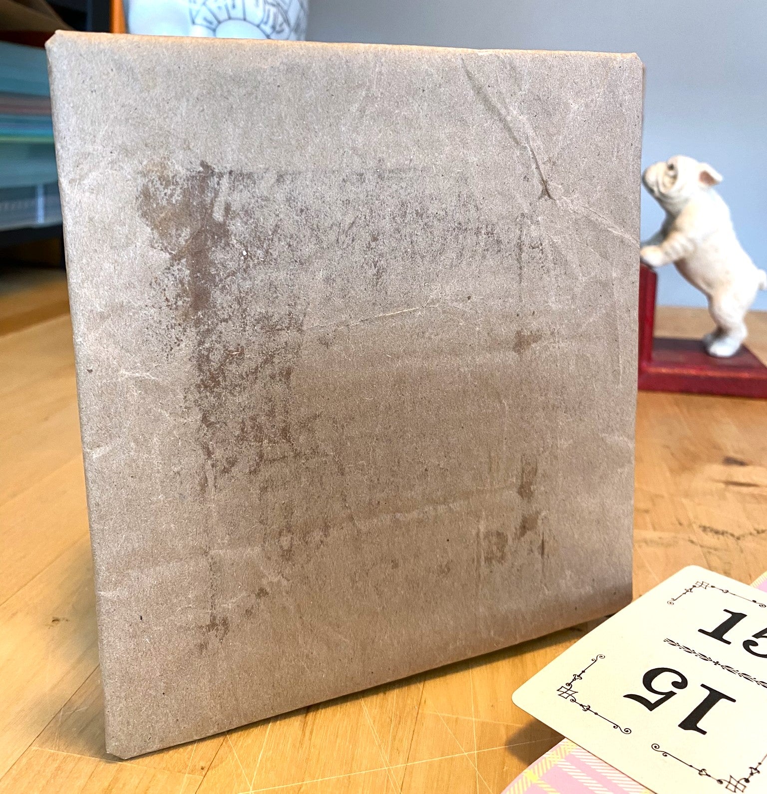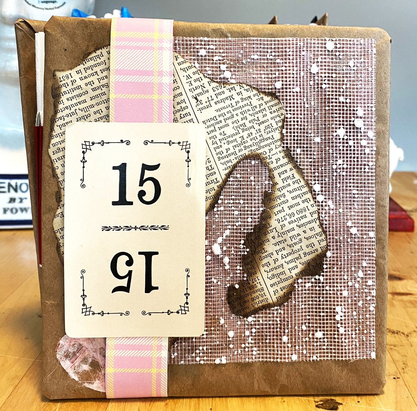 Journal also comes with a paper pocket band that can be used or removed. It can catch little bits of paper, or indicate where you are in your journal. It can also be flattened and used as a bookmark. This paper band features a vintage playing card with the number 15 on it.