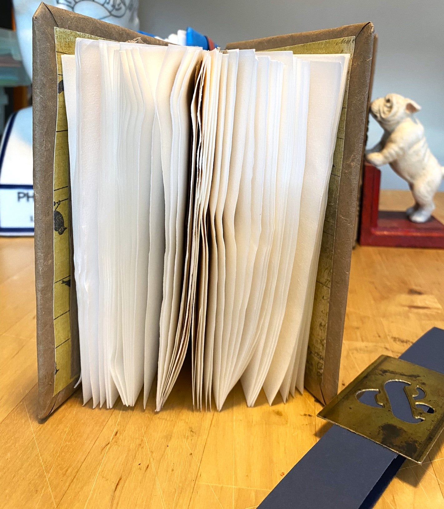 Pages are recycled and reused mullberry and rice papers. All pages are thin, and most can easily be seen through; none of them are lined.