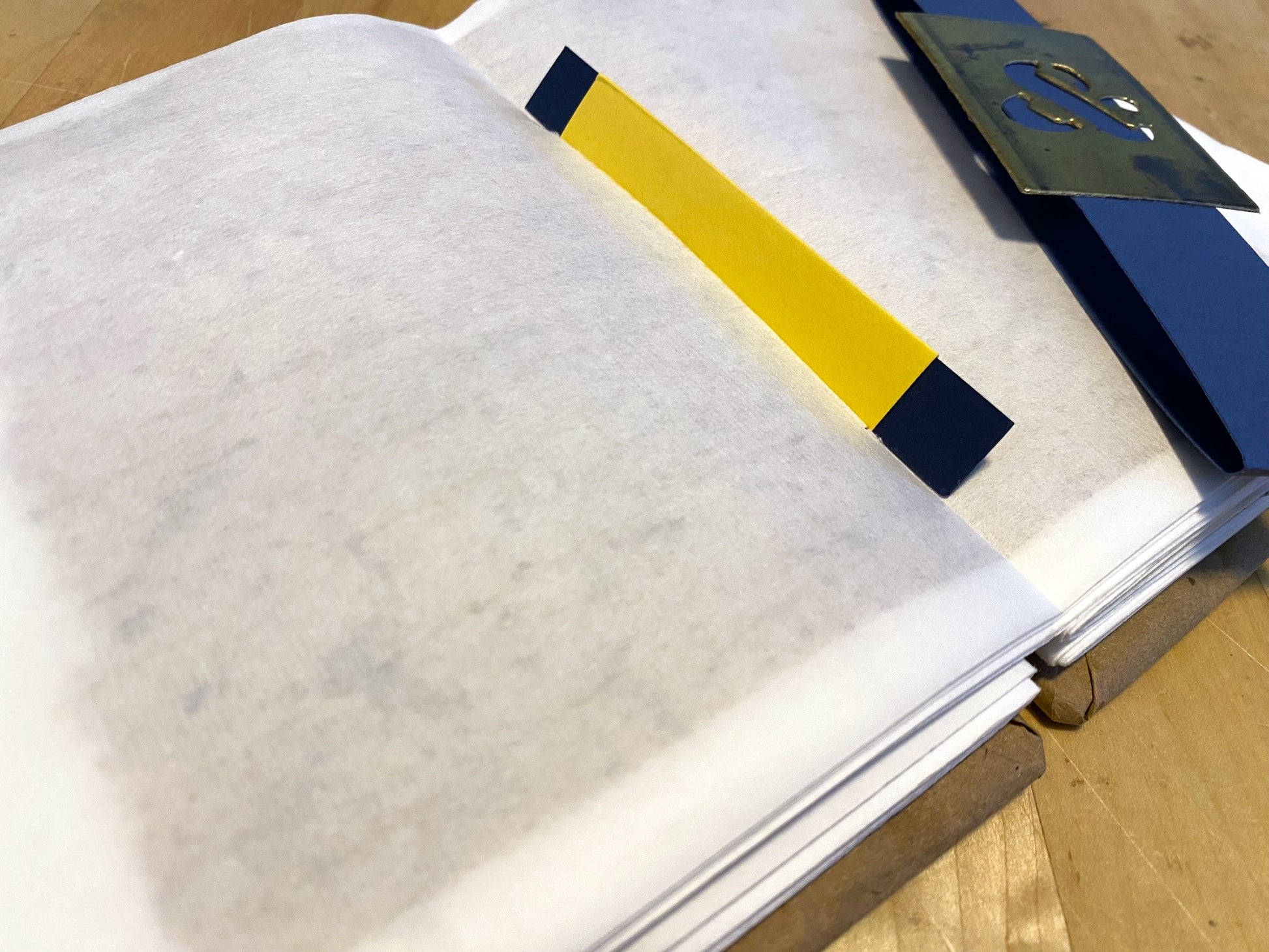 Journal also comes with a paper pocket band that can be used or removed. It can catch little bits of paper, or indicate where you are in your journal. It can also be flattened and used as a bookmark. This paper band features a thick gold cardstock ampersand.