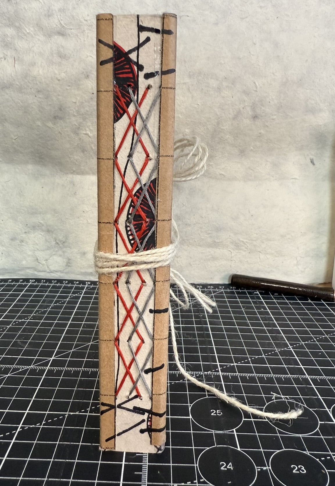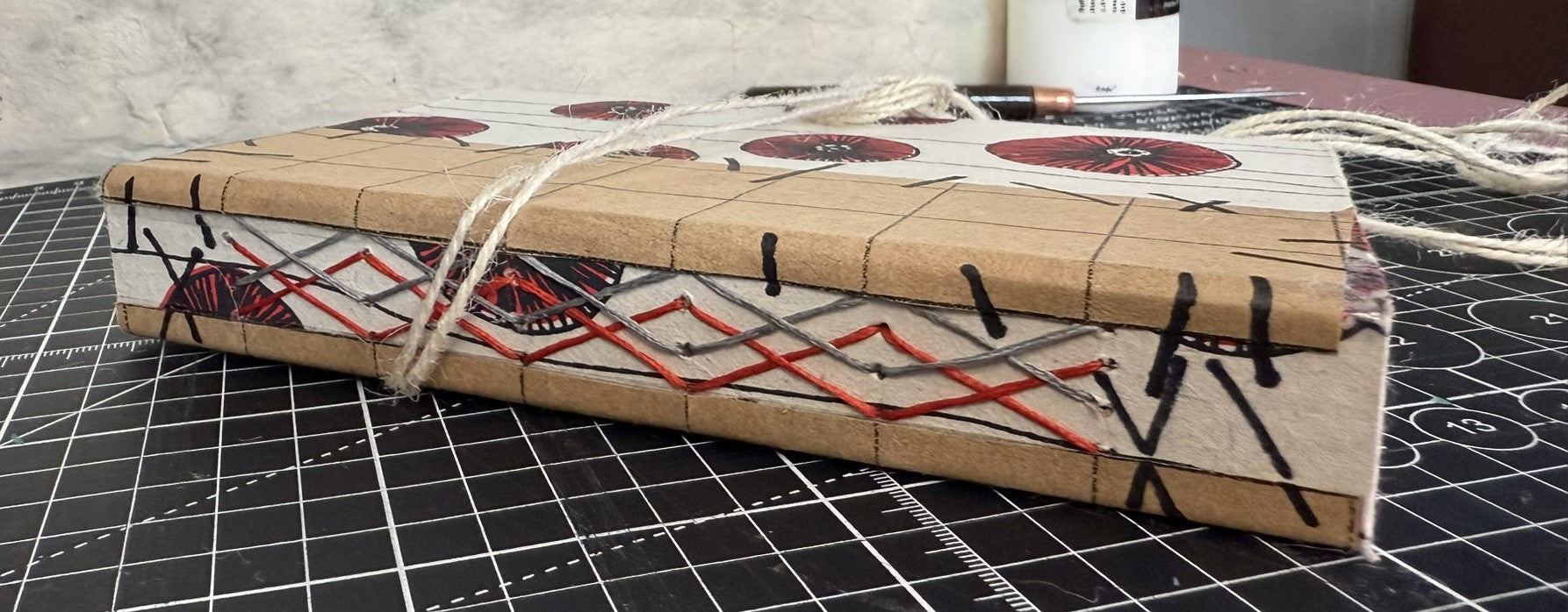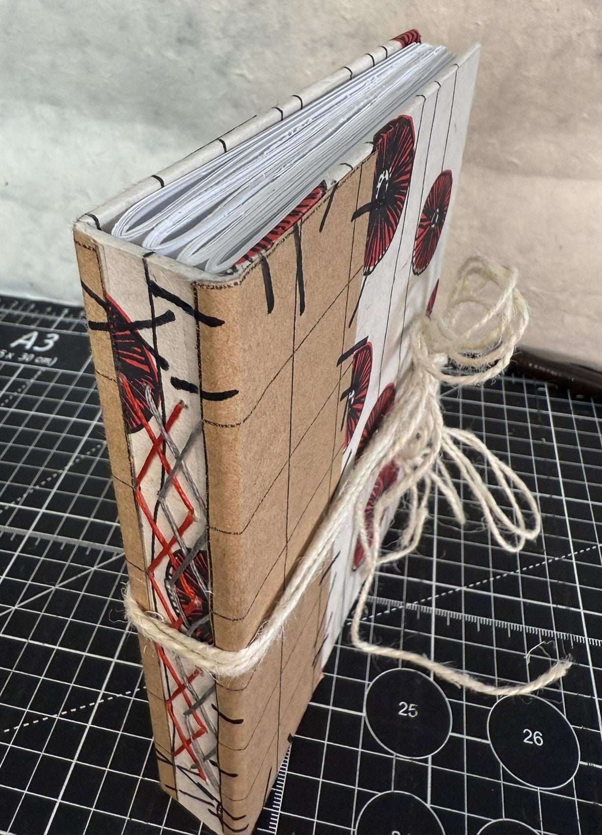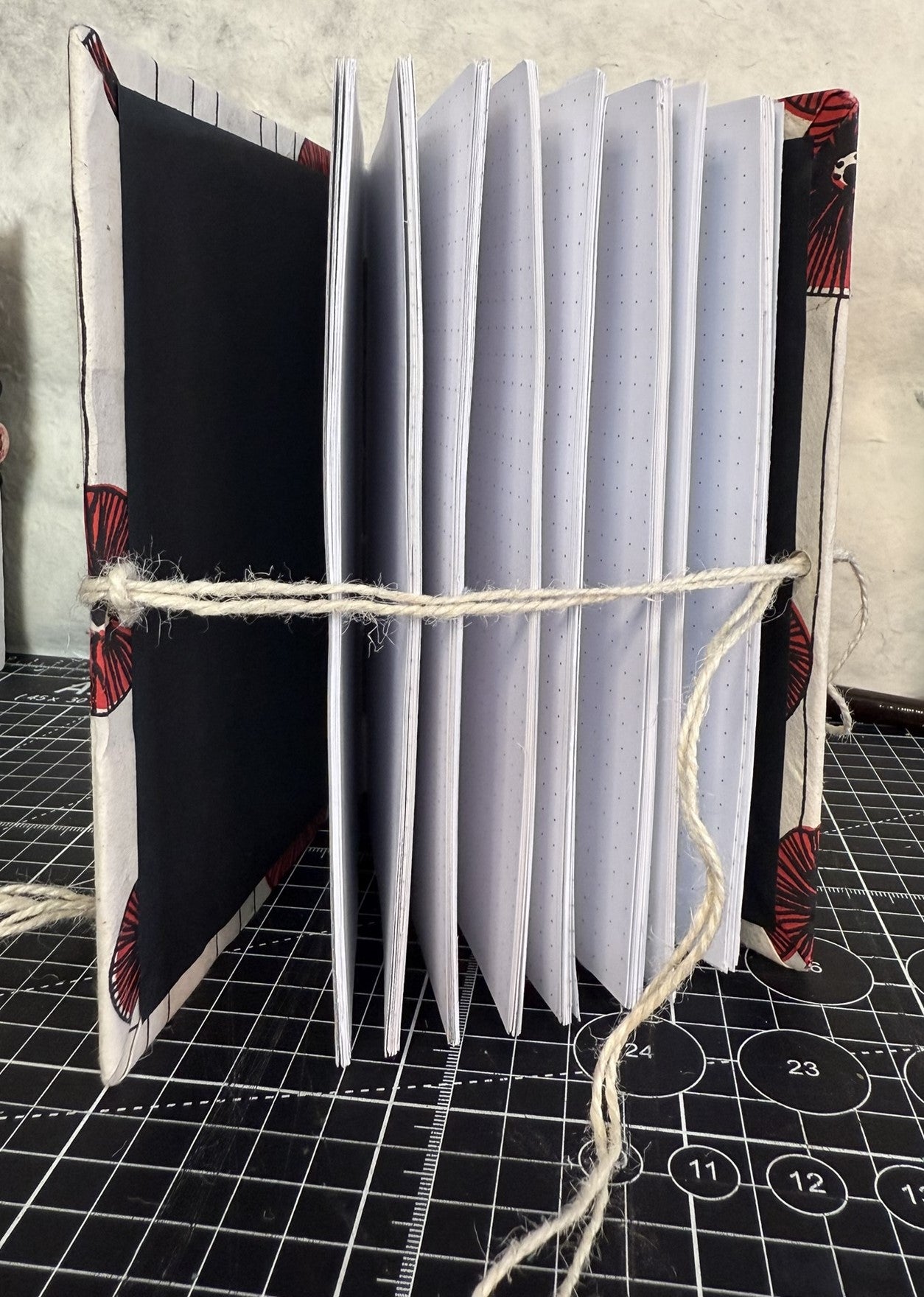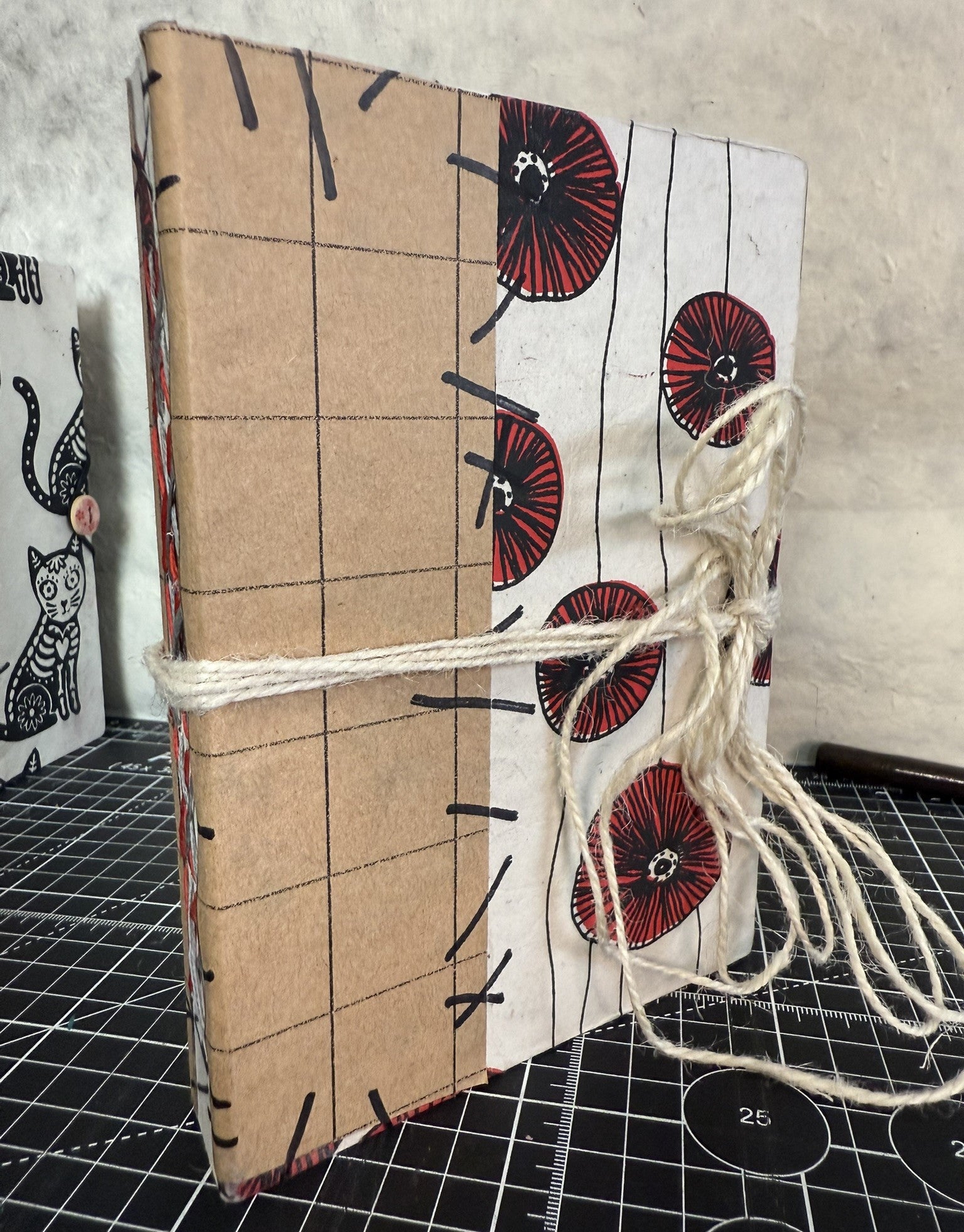 Wrapped in lokta paper printed with striking red and black poppies, this journal balances softness with strength. Inside, black kraft paper lines the covers, grounding the design in contrast and calm.