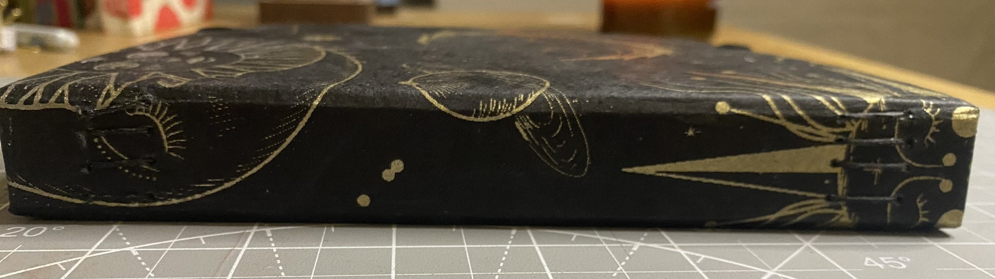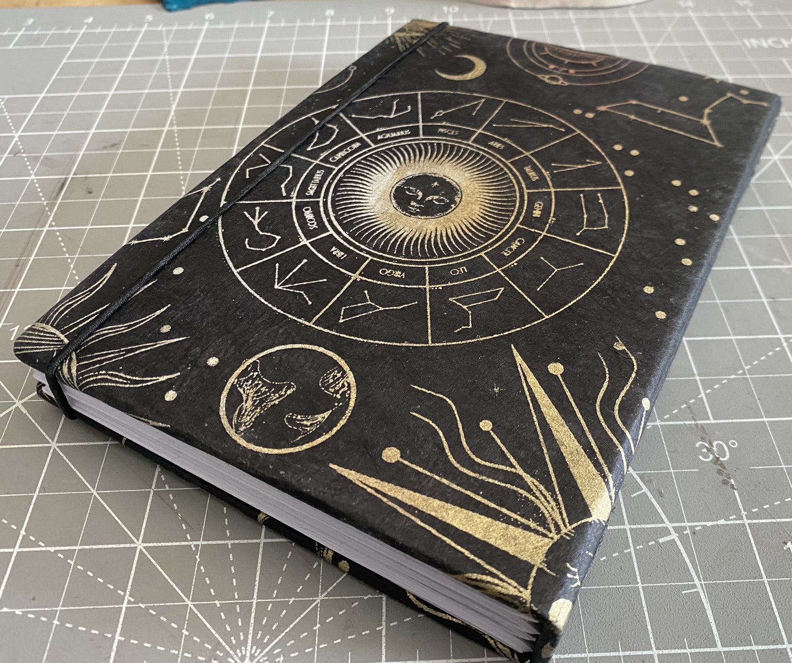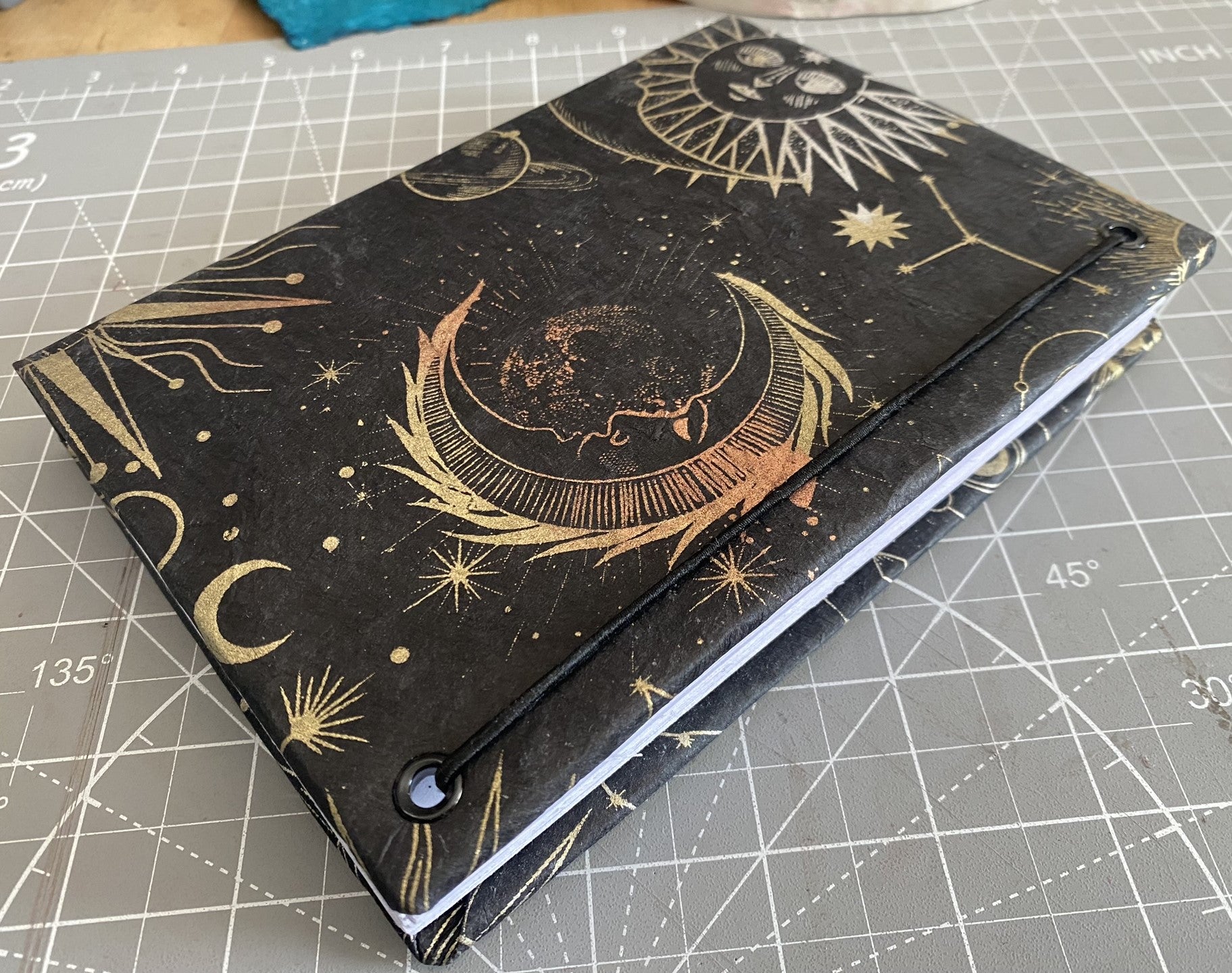 Cover: Lokta paper with celestial print, lined with black kraft paper