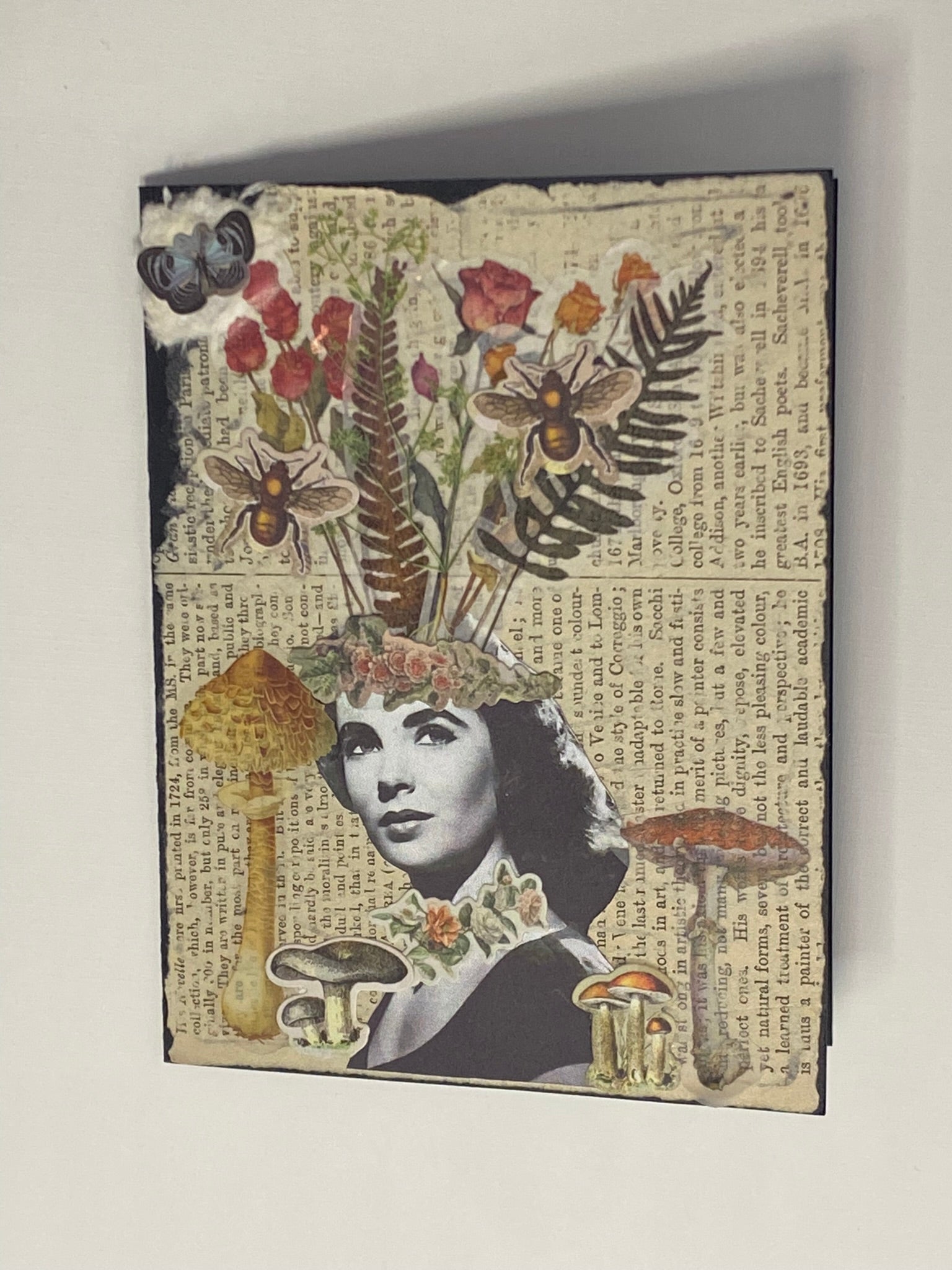 Card Materials: New and recycled papers, acetate, and thread. Includes papers recycled from a bible.