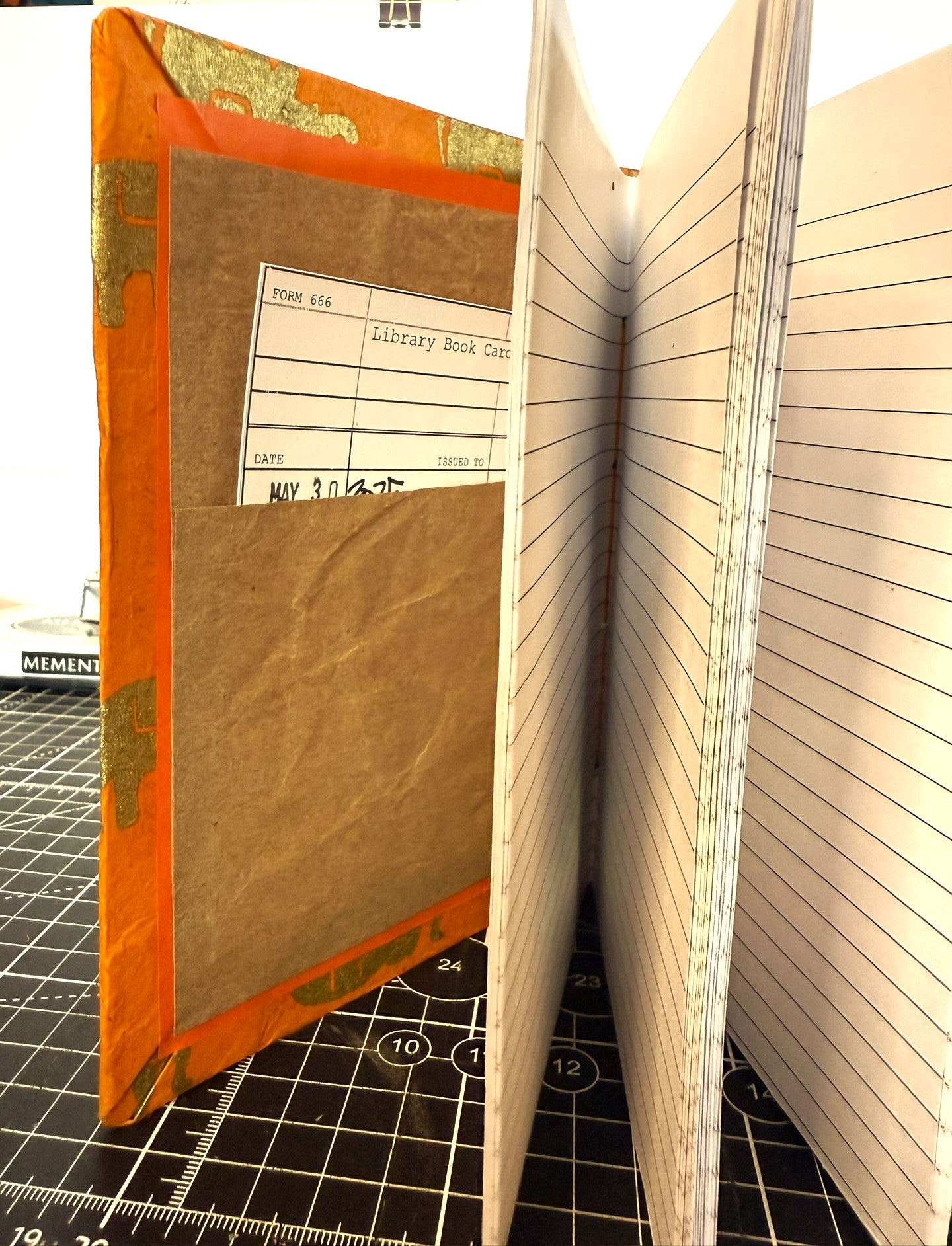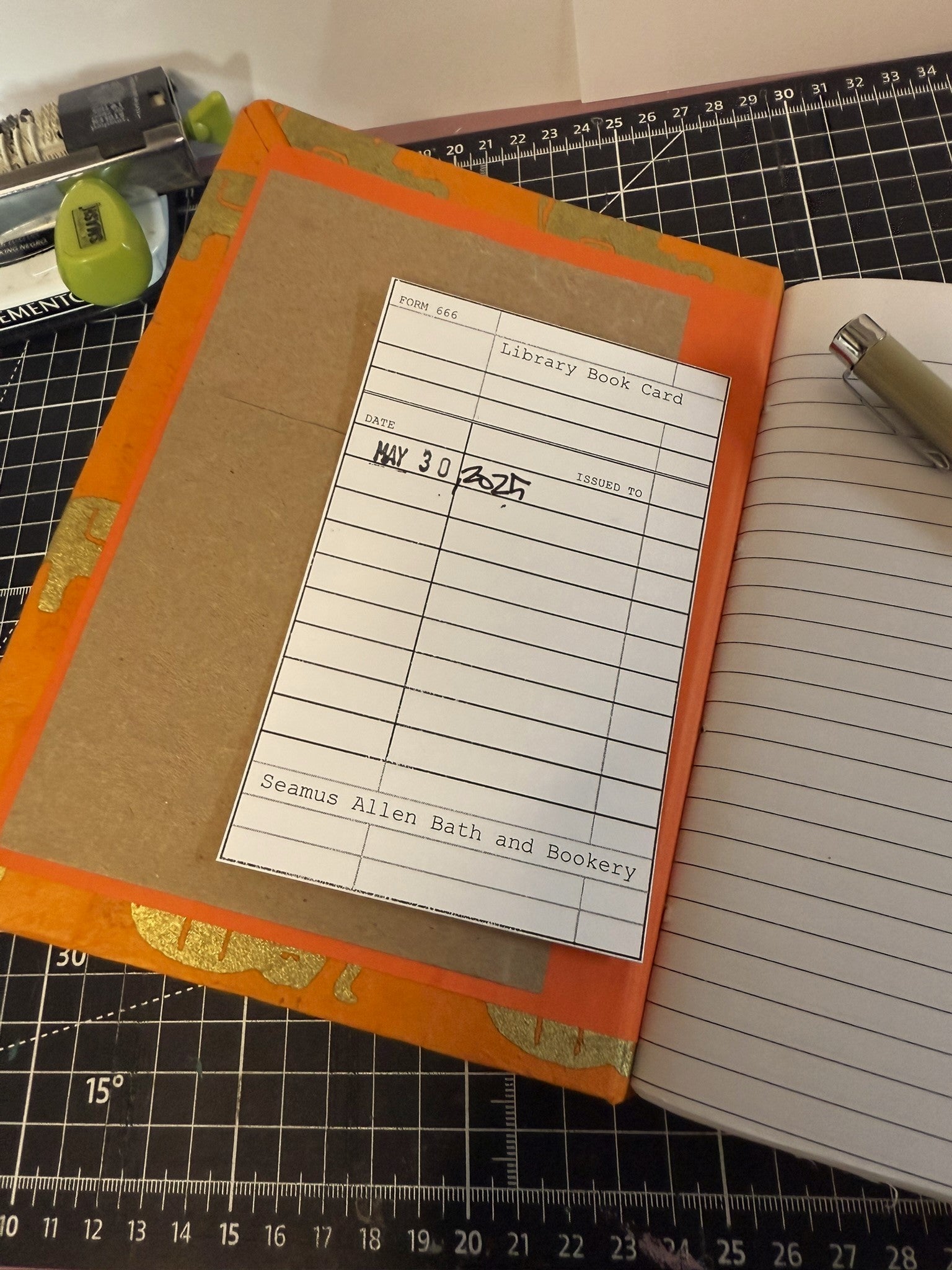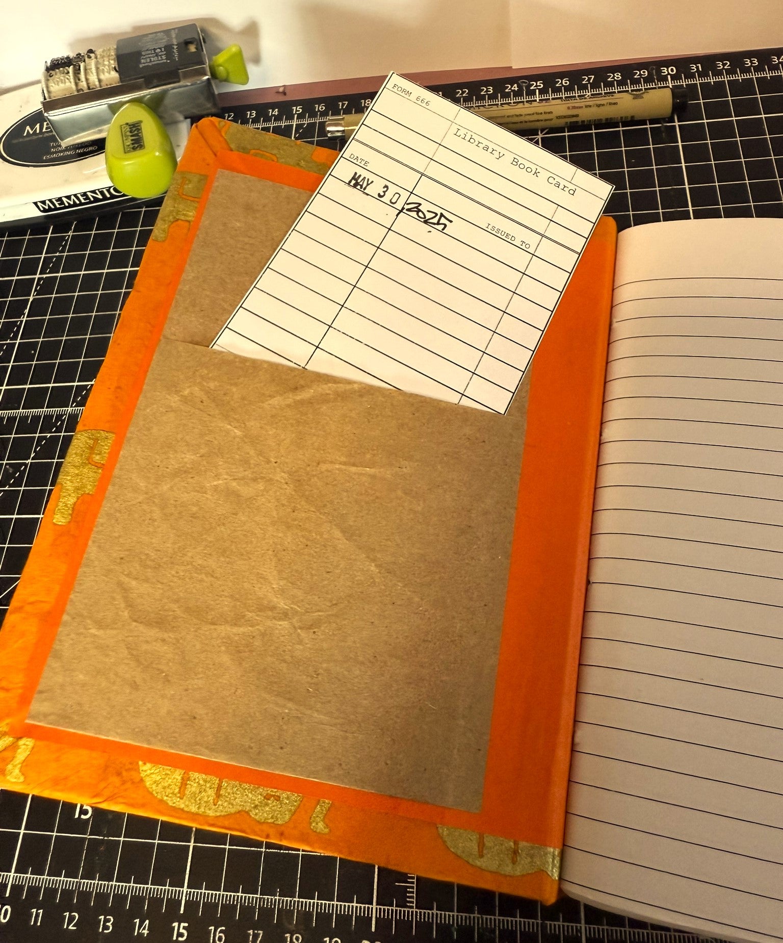 A stamped library card pocket inside marks the date this journal was finished—because every handmade thing deserves a record.