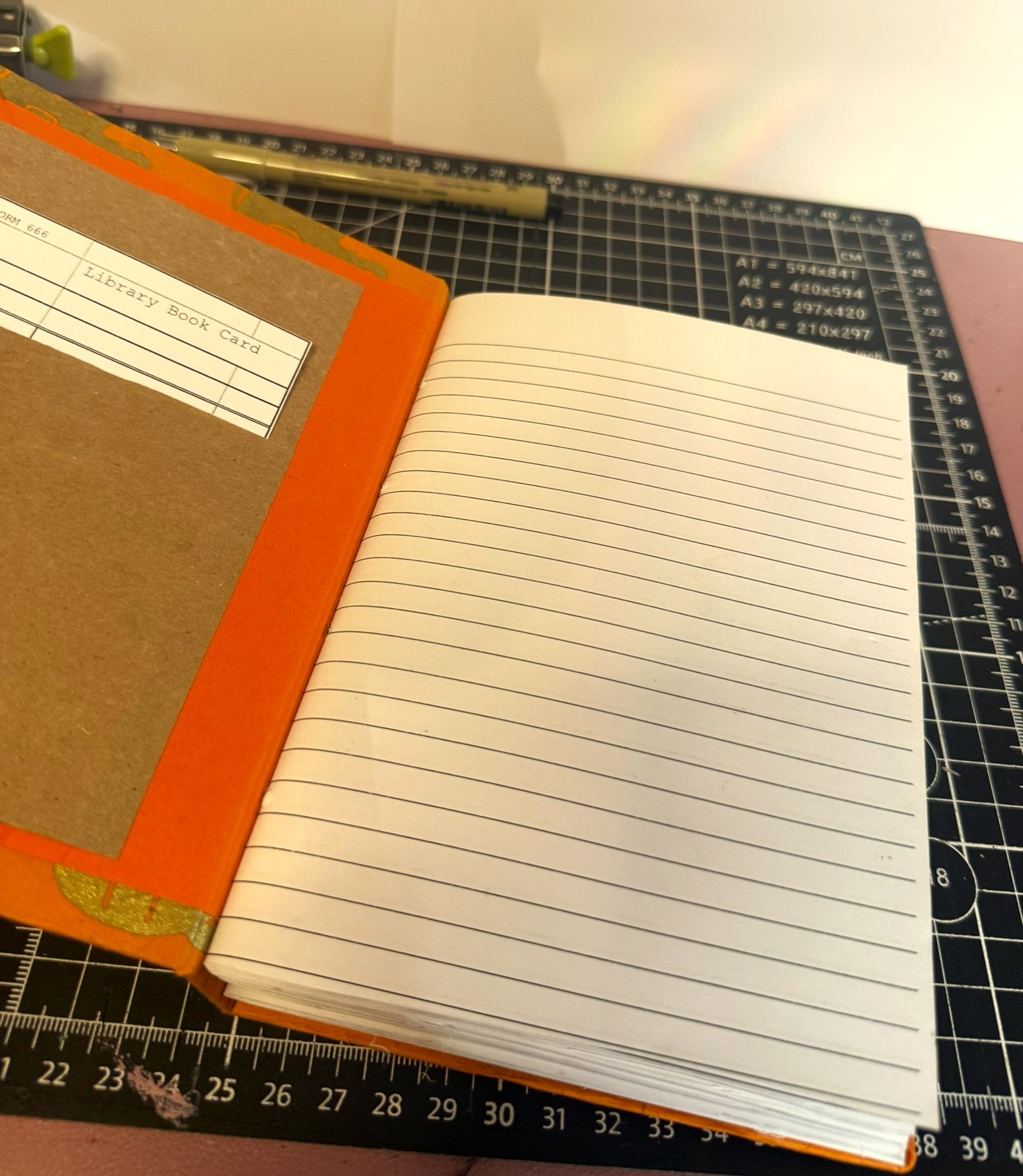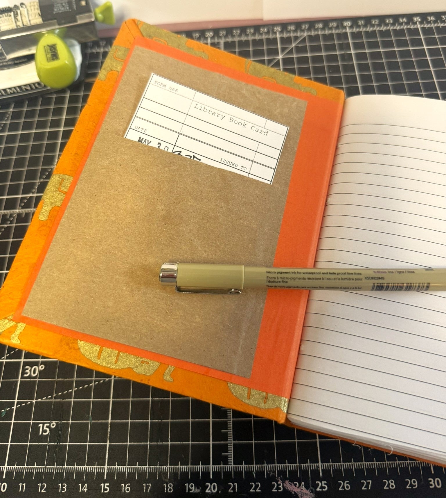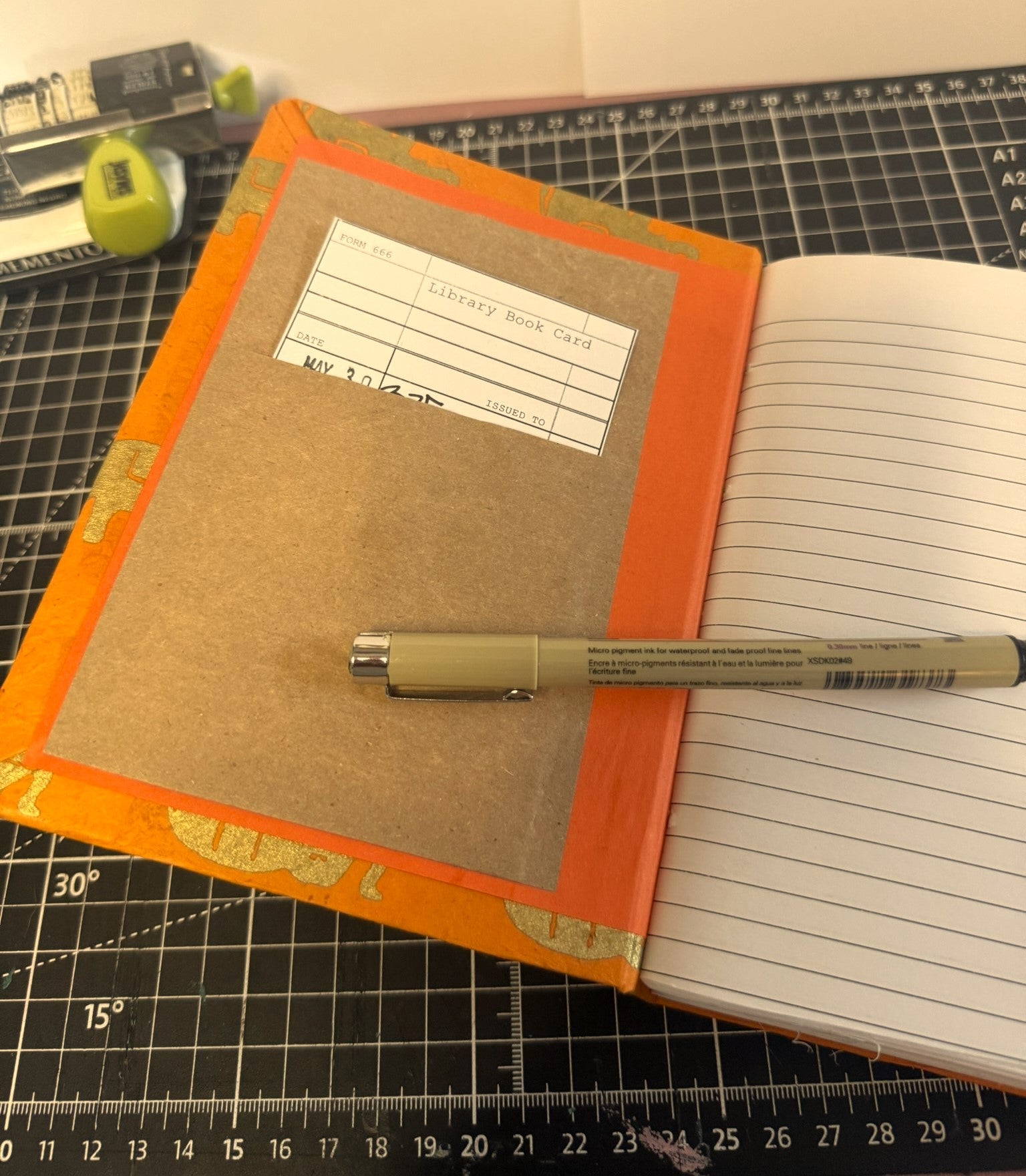A stamped library card pocket inside marks the date this journal was finished—because every handmade thing deserves a record.