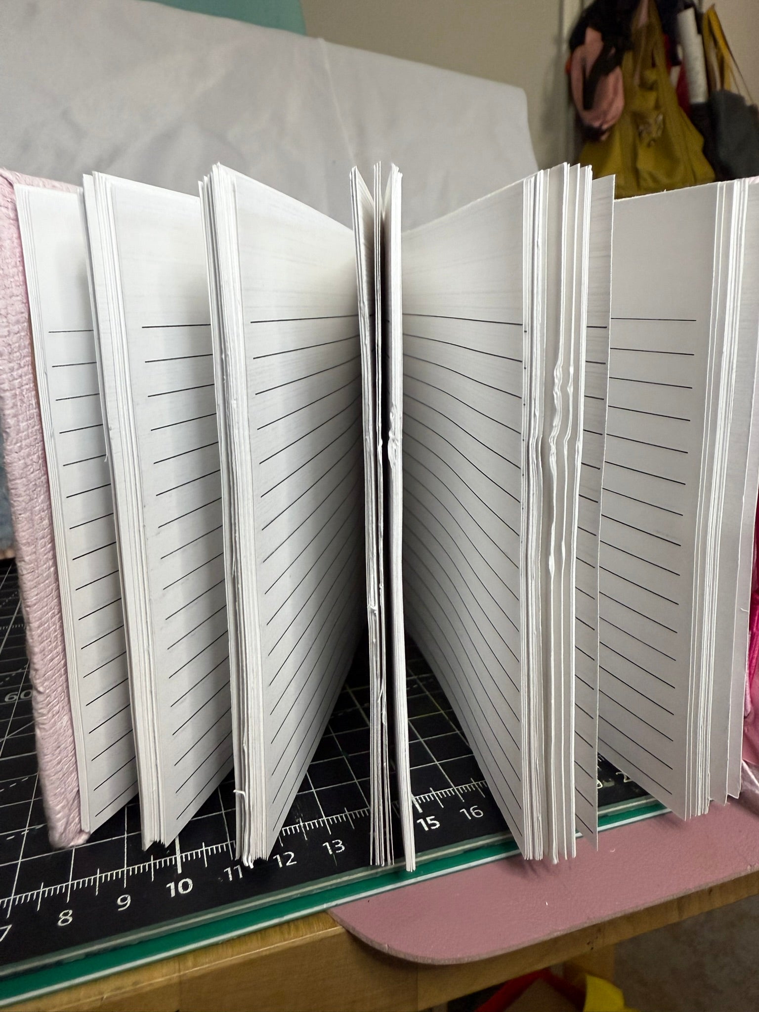 *Note in book reads: This journal's cover was created from paper I made by hand, using scraps collected in my studio. Because I use a mix of materials, you may notice color shifts, fibers, and fragments within the sheet. These details are part of the handmade process and make each cover unique and truly one of a kind.