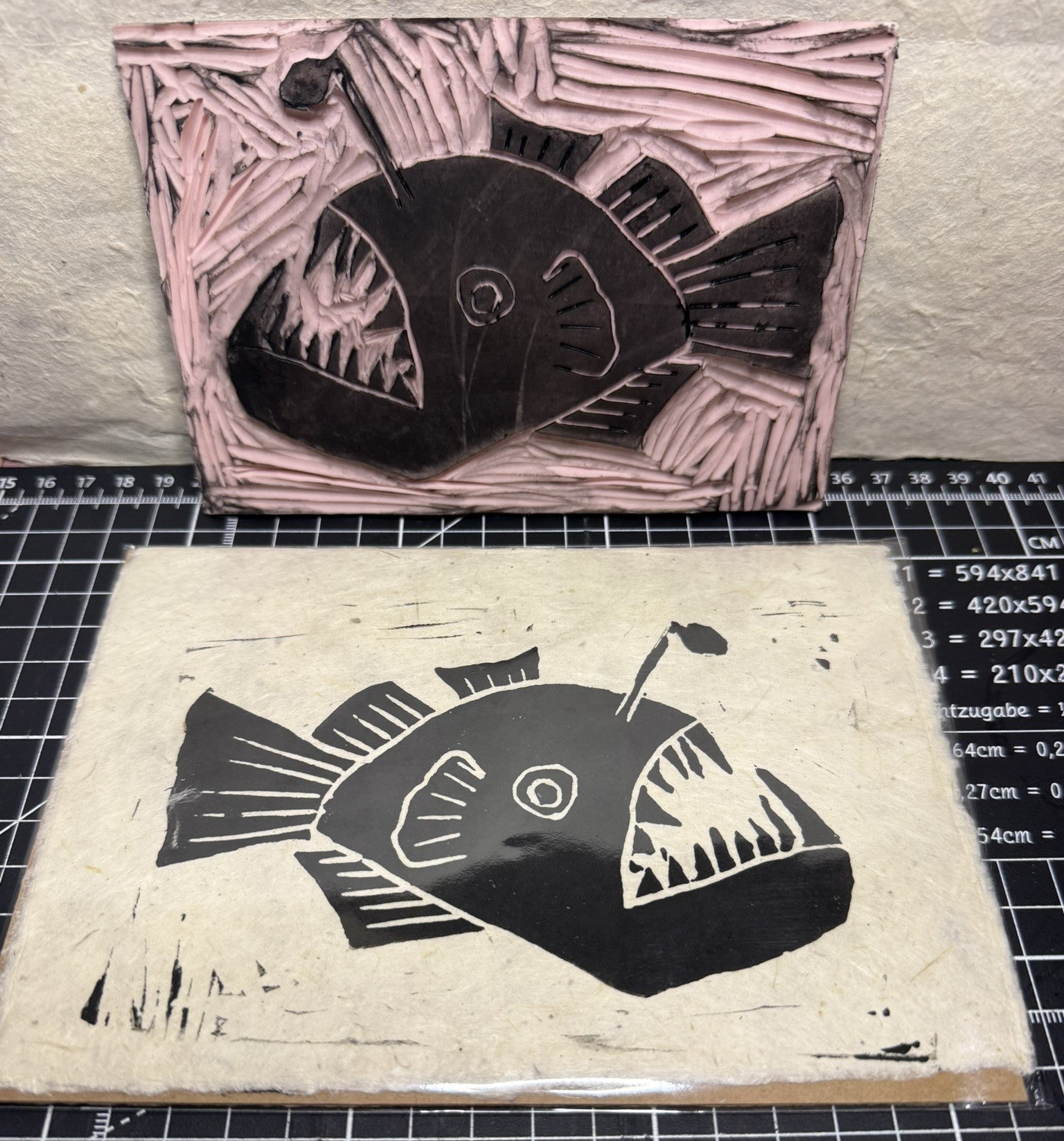 This hand-carved angler fish brings deep-sea drama and a slightly sinister grin to the surface—because sometimes the weirdest creatures have the best lighting.