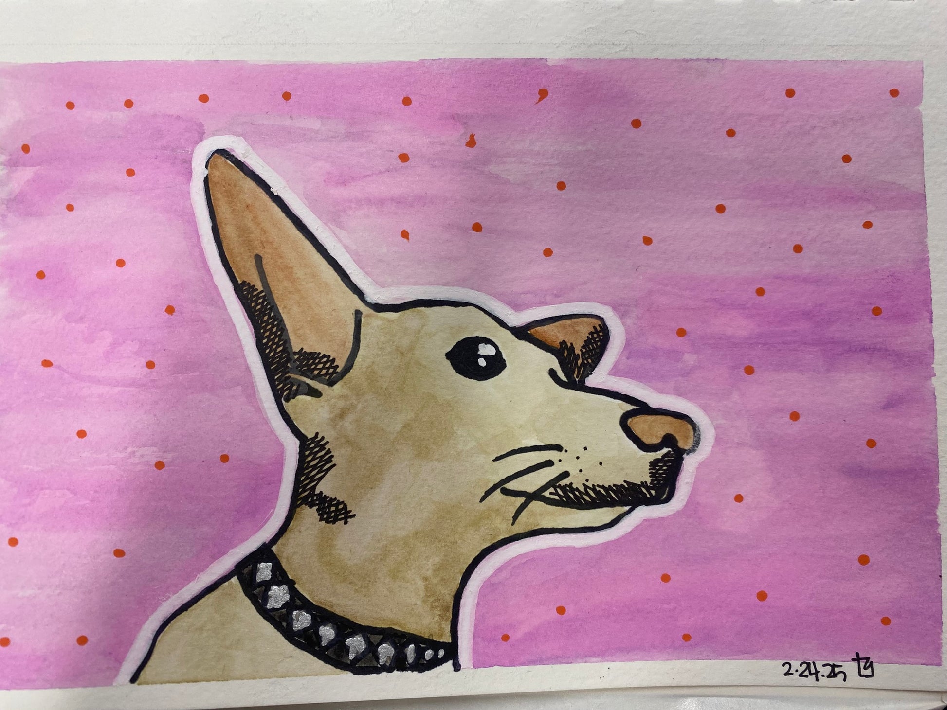 “Pepe” the Chihuahua – light brown fur, pink/orange background – 3"