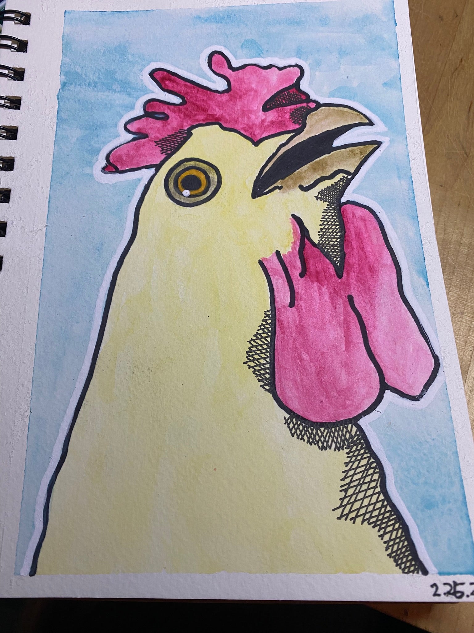 Yellow Rooster - cock - (blue background, kiss cut & full of personality, I honestly can't stop laughing at him) – 3"